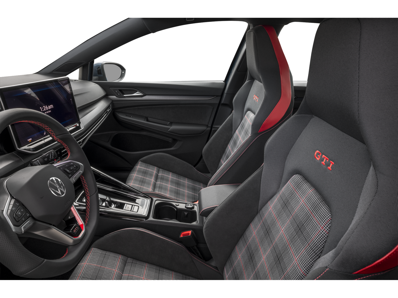 Moonstone 2026 Volkswagen Golf GTI 2.0T S FWD 7-Speed DSG Automatic with Tiptronic 2.0L TSI DOHC 4-Wheel Disc Brakes, ABS brakes, Air Conditioning, Alloy wheels, Auto-dimming Rear-View mirror, Automatic temperature control, Brake assist, Compass, Delay-off headlights, Driver door bin, Driver vanity mirror, Dual front impact airbags, Dual front side impact airbags, Electronic Stability Control, Exterior Parking Camera Rear, Four wheel independent suspension, Front anti-roll bar, Front Bucket Seats, Front fog lights, Front reading lights, Fully automatic headlights, Heated door mirrors, Heated front seats, Heated steering wheel, Illuminated entry, Leather steering wheel, Low tire pressure warning, Navigation System, Occupant sensing airbag, Outside temperature display, Overhead airbag, Overhead console, Panic alarm, Passenger door bin, Passenger vanity mirror, Power door mirrors, Power driver seat, Power passenger seat, Power steering, Power windows, Radio data system, Rain sensing wipers, Rear anti-roll bar, Rear reading lights, Rear window defroster, Rear window wiper, Remote keyless entry, Security system, Speed control, Speed-sensing steering, Speed-Sensitive Wipers, Split folding rear seat, Spoiler, Steering wheel mounted audio controls, Tachometer, Telescoping steering wheel, Tilt steering wheel, Traction control, Trip computer, Turn signal indicator mirrors, Variably intermittent wipers.
