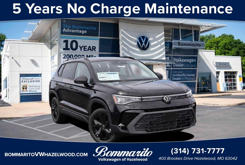 Deep Black Pearl 2026 Volkswagen Taos 1.5T SE Black FWD 8-Speed Automatic with Tiptronic 1.5L I4 Turbocharged DOHC 16V LEV3-SULEV30 174hp 4-Wheel Disc Brakes, 6 Speakers, ABS brakes, Active Blind Spot Monitor, Air Conditioning, Alloy wheels, AM/FM radio: SiriusXM with 360L, Auto High-beam Headlights, Auto-Dimming Rear-View Mirror, Automatic temperature control, Brake assist, Bumpers: body-color, Cloudtex and Cloth Seating Surfaces, Compass, Delay-off headlights, Driver door bin, Driver vanity mirror, Dual front impact airbags, Dual front side impact airbags, Electronic Stability Control, Emergency communication system: VW Car-Net Safe & Secure 5-year, Exterior Parking Camera Rear, Front anti-roll bar, Front Bucket Seats, Front Center Armrest, Front dual zone A/C, Front reading lights, Front Strut Rear Torsion Beam Suspension, Front wheel independent suspension, Fully automatic headlights, Heated door mirrors, Heated Front Bucket Seats, Heated front seats, Heated steering wheel, Illuminated entry, Leather Shift Knob, Low tire pressure warning, Occupant sensing airbag, Outside temperature display, Overhead airbag, Overhead console, Panic alarm, Passenger door bin, Passenger vanity mirror, Power door mirrors, Power driver seat, Power moonroof, Power steering, Power windows, Radio data system, Radio: MIB3 Composition Media AM/FM/HD, Rain sensing wipers, Rear anti-roll bar, Rear seat center armrest, Rear window defroster, Rear window wiper, Remote keyless entry, Rubber Mats Kit, Security system, Speed control, Speed-sensing steering, Split folding rear seat, Spoiler, Steering wheel mounted audio controls, Tachometer, Telescoping steering wheel, Tilt steering wheel, Traction control, Trip computer, Variably intermittent wipers, VW Care, Wheels: 18" Black Painted Alloy.